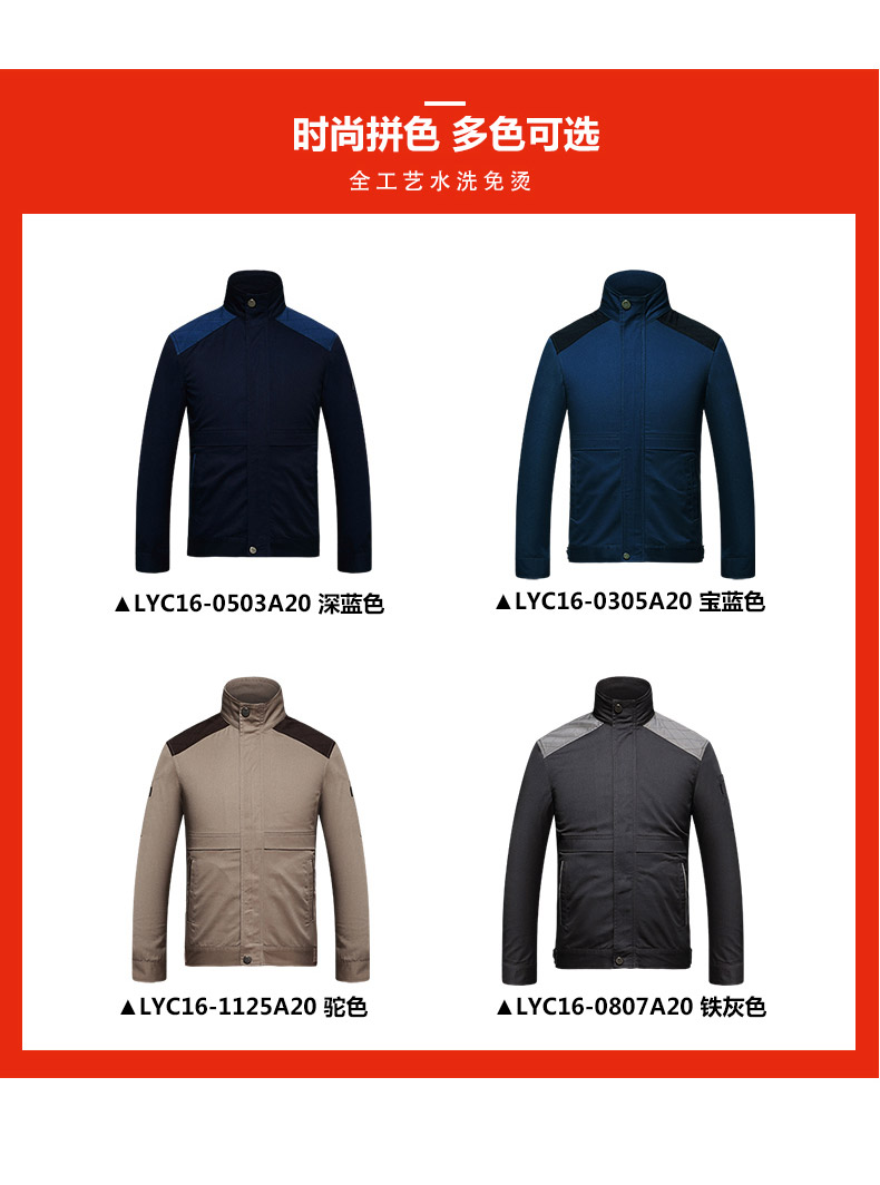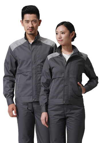 > 重庆涤棉厚纱卡铁灰插色长袖工作服