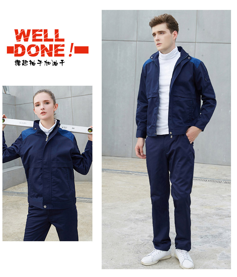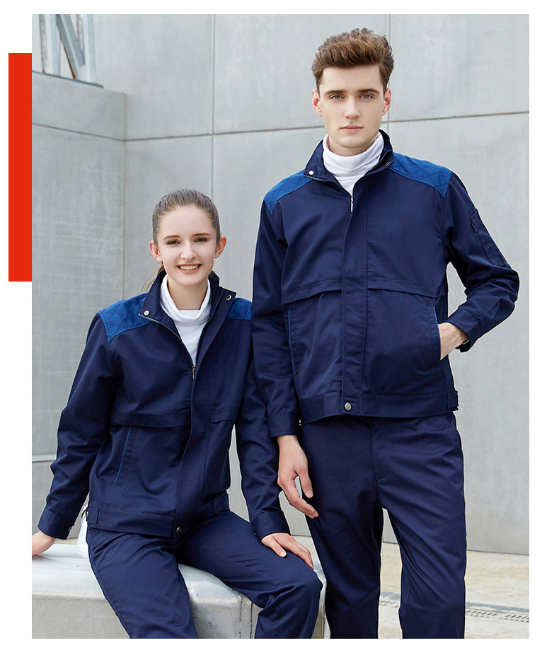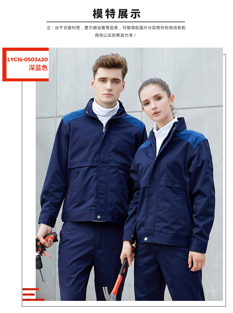 重庆涤棉厚纱卡深蓝插色长袖工作服
