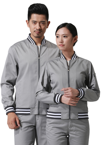 > 重庆涤棉厚纱卡浅灰色长袖工作服