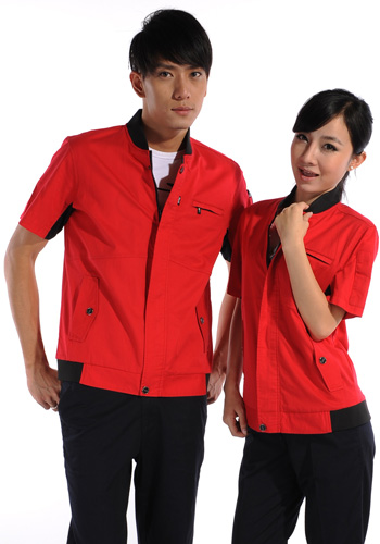 重庆涤棉斜纹红色短袖工作服
