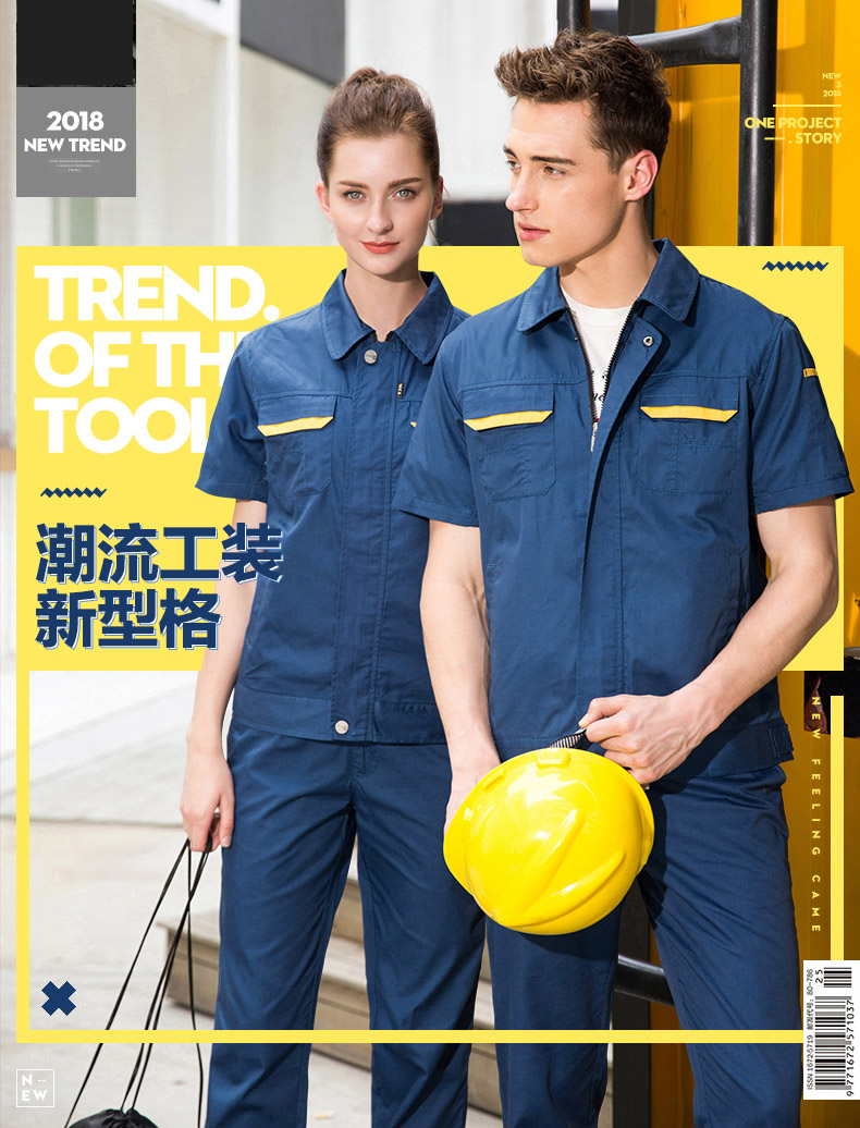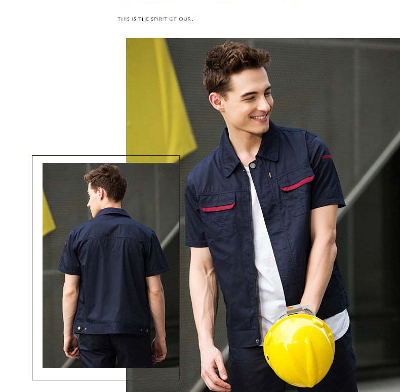 > 重庆中灰色细斜纹涤棉短袖工作服