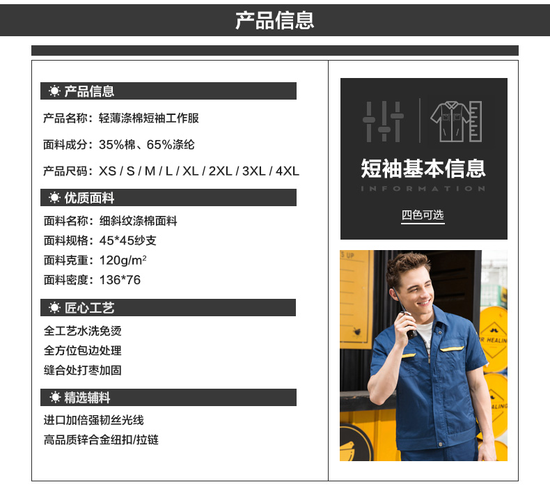采购:重庆中灰色细斜纹涤棉短袖工作服