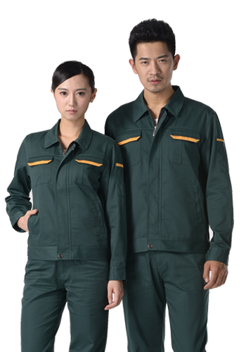 重庆墨绿色纱卡涤棉长袖工作服