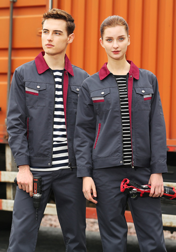 > 重庆铁灰色长袖涤棉纱卡工作服