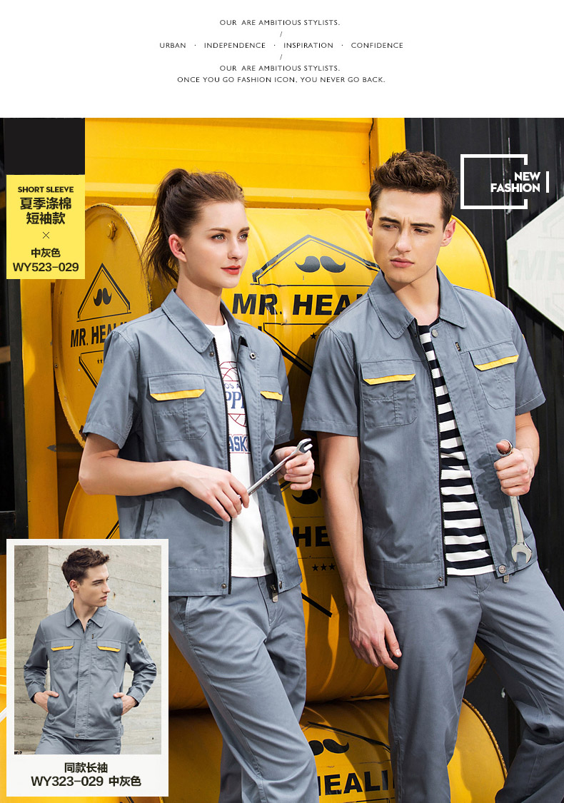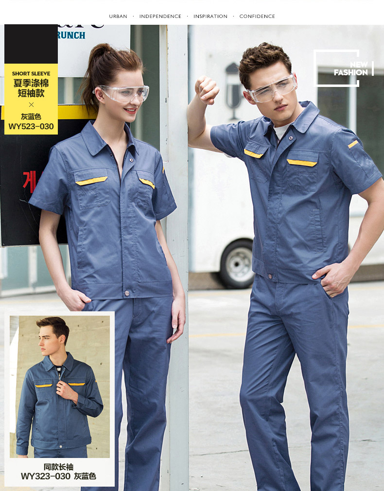 采购:重庆灰蓝色细斜纹涤棉短袖工作服