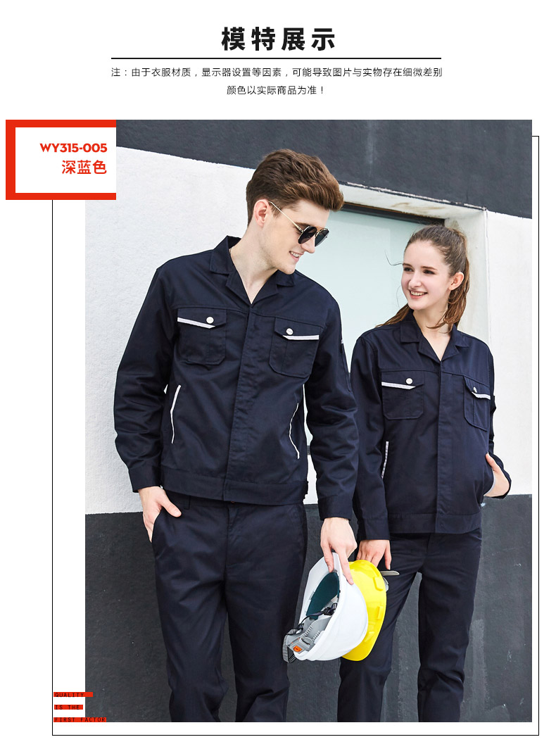 采购:重庆涤棉纱卡深蓝长袖工作服
