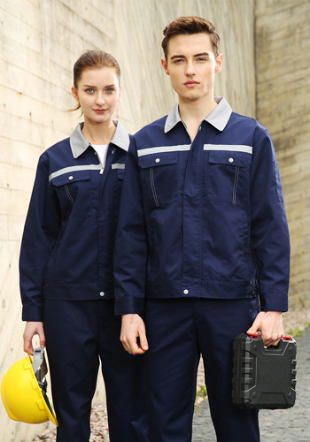 > 重庆涤棉厚纱卡深蓝色长袖工作服