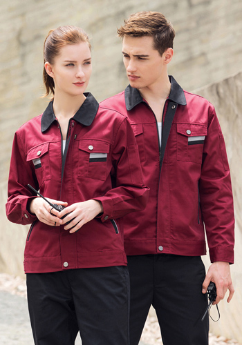 采购:重庆枣红色长袖涤棉纱卡工作服