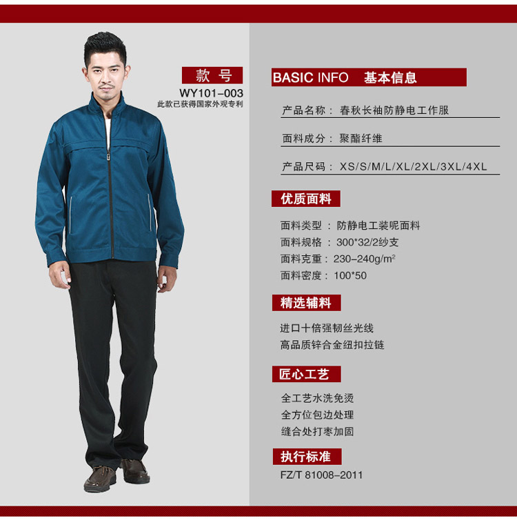 > 重庆宝蓝长袖防静电工作服