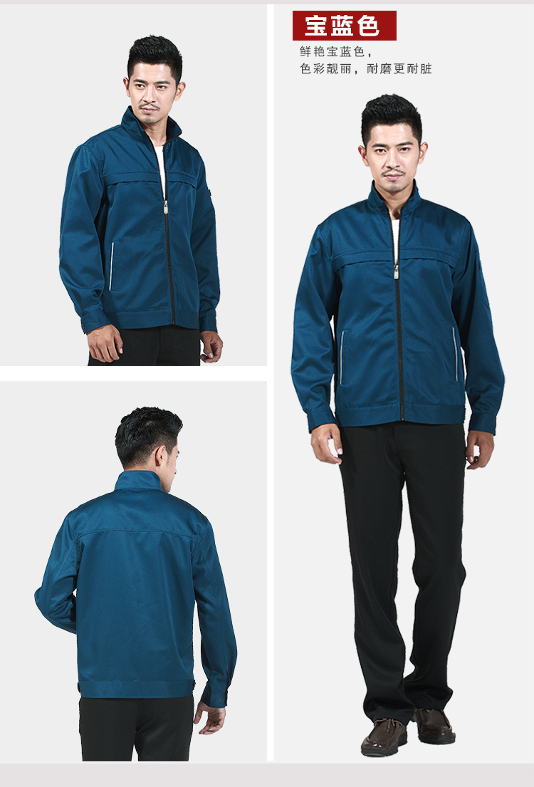 重庆涤棉厚纱卡科技蓝色长袖工作服
