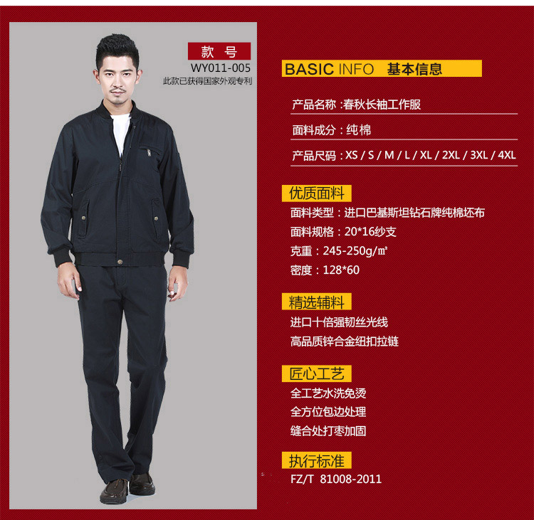 重庆深蓝长袖纯棉工作服