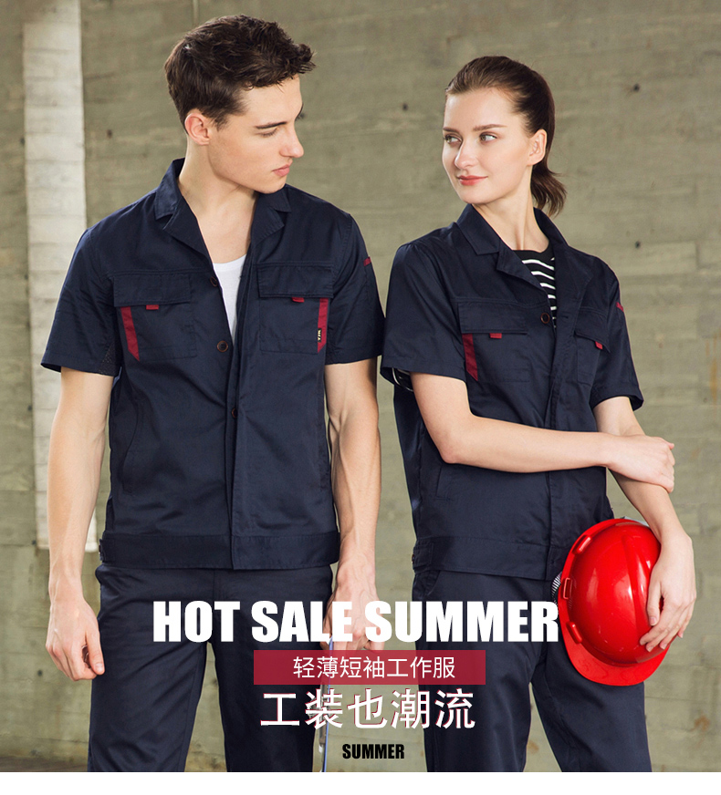 > 重庆深蓝色斜纹涤棉短袖工作服