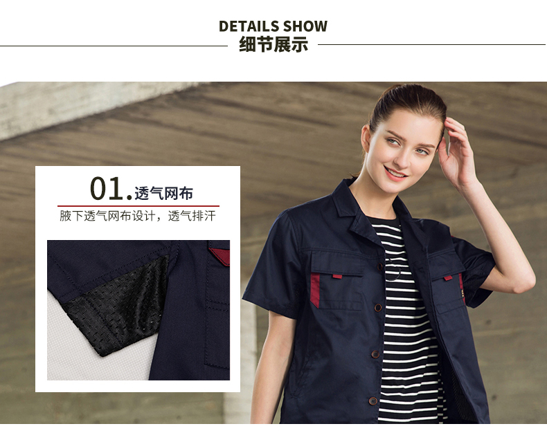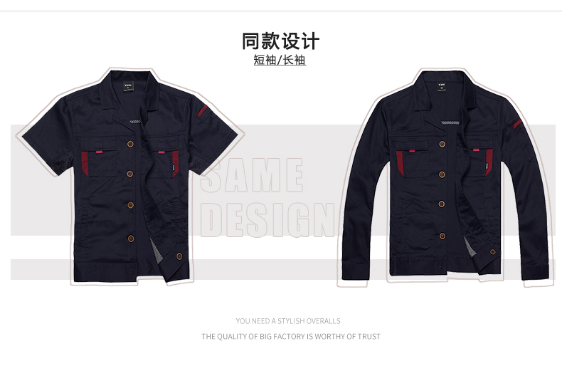 重庆涤棉细斜纹宝蓝深蓝插色短袖工作服