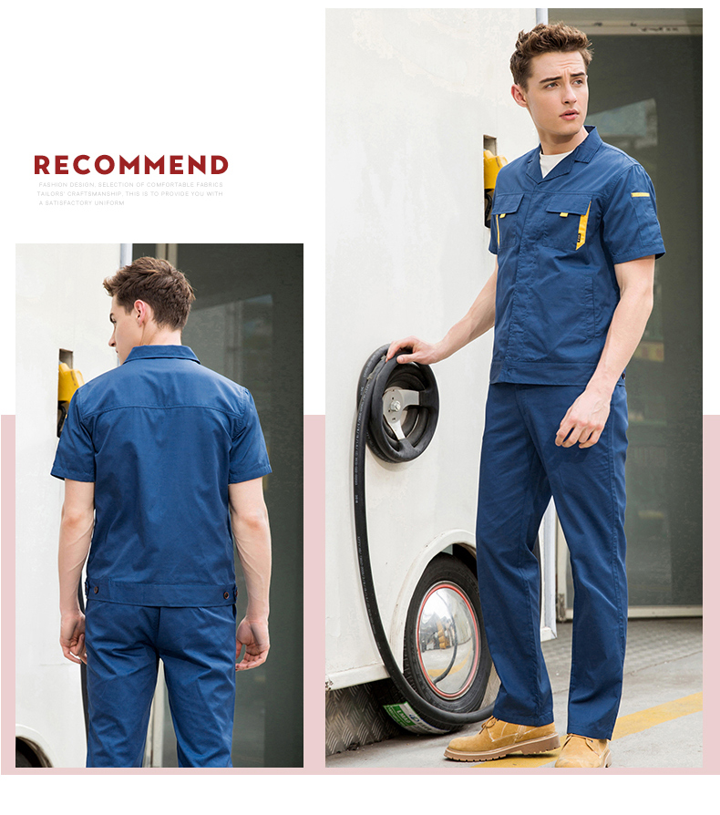 重庆涤棉细斜纹宝蓝色短袖工作服