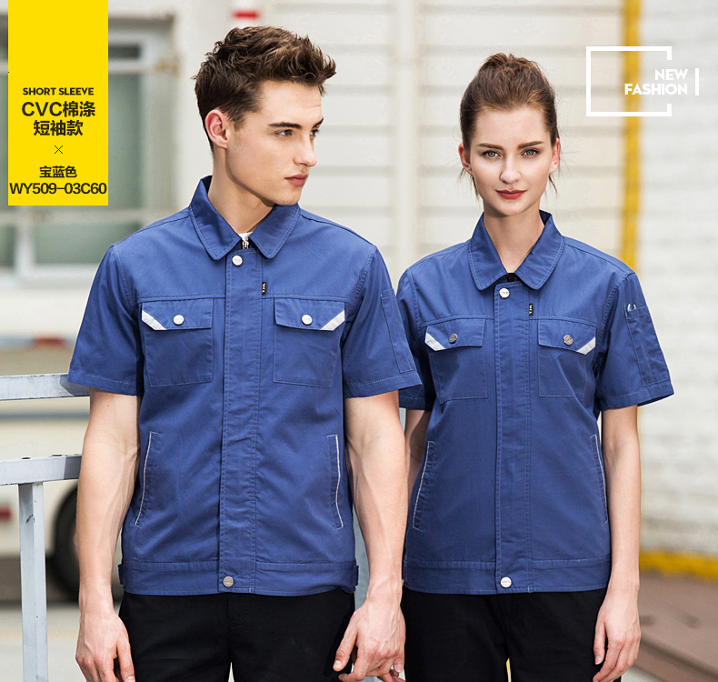 重庆涤棉细斜纹宝蓝色短袖工作服