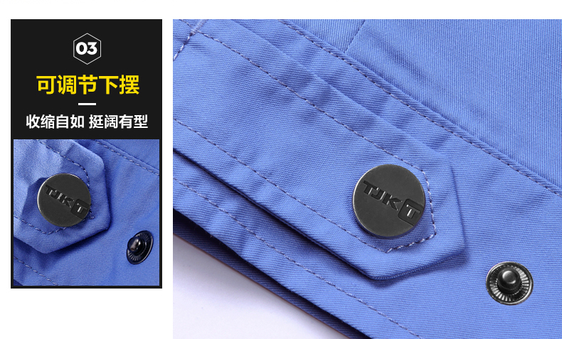 重庆涤棉厚纱卡科技蓝色长袖工作服
