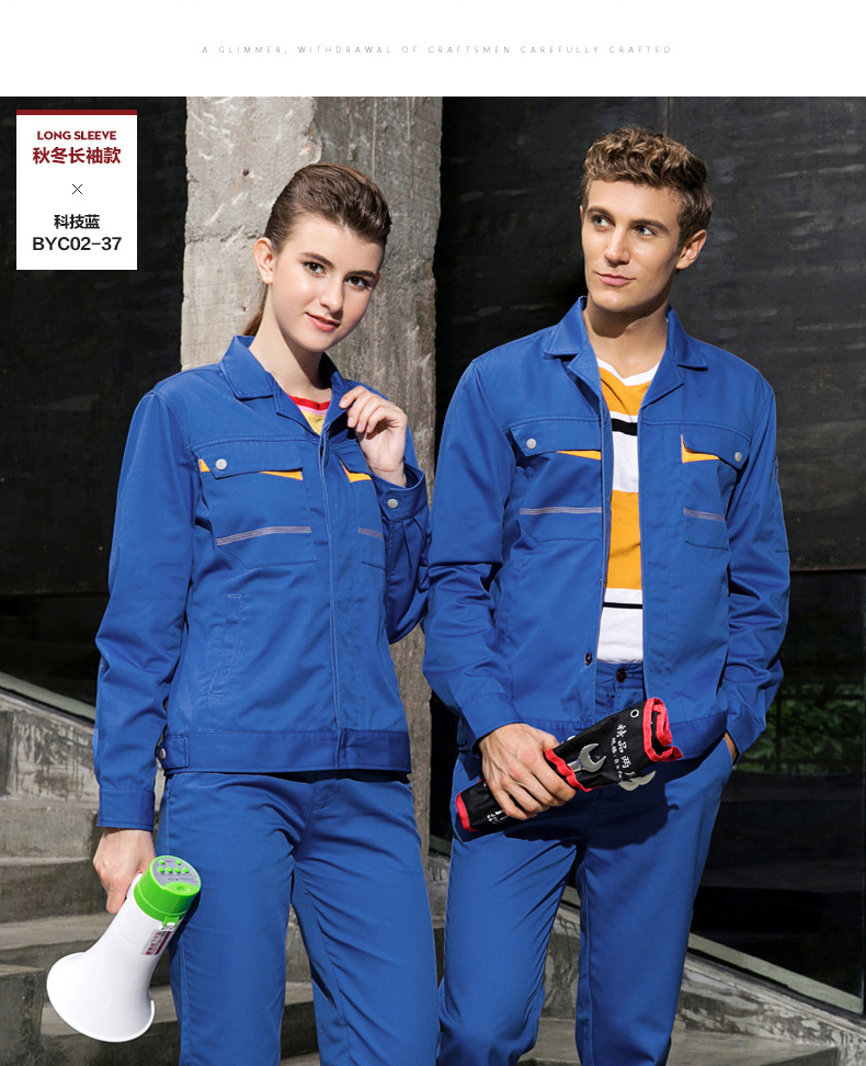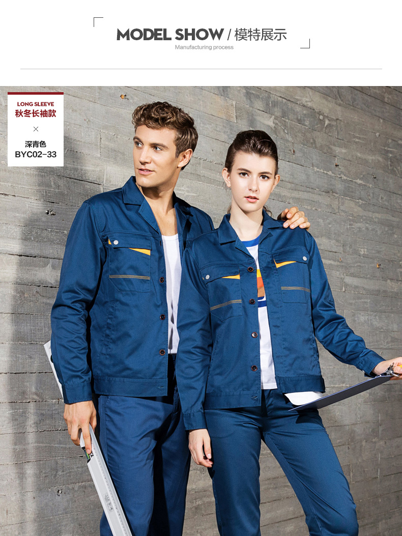 采购:重庆涤棉厚纱卡科技蓝色长袖工作服