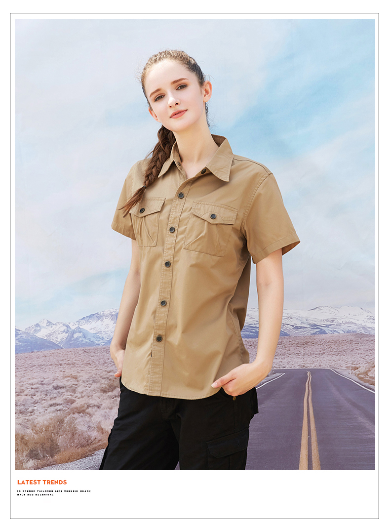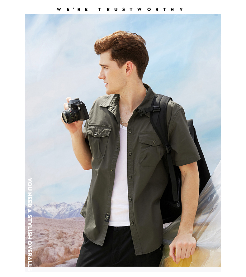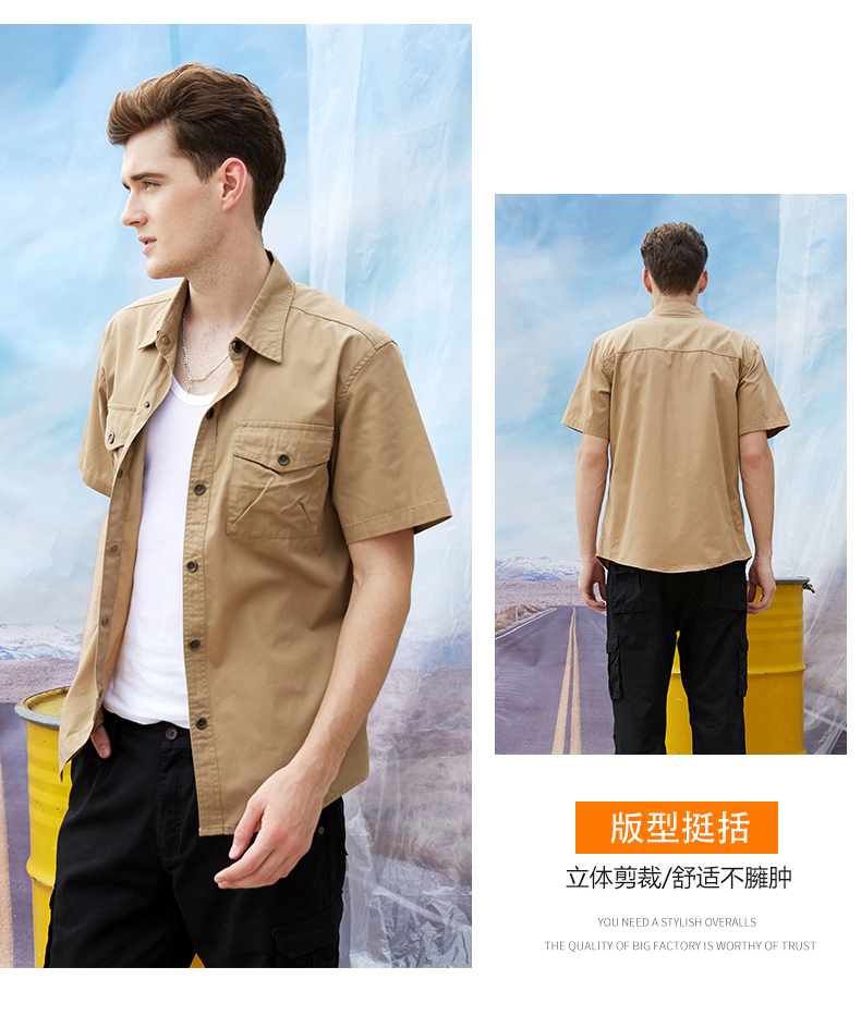 > 重庆军绿色CVC细斜纹衬衫短袖工作服