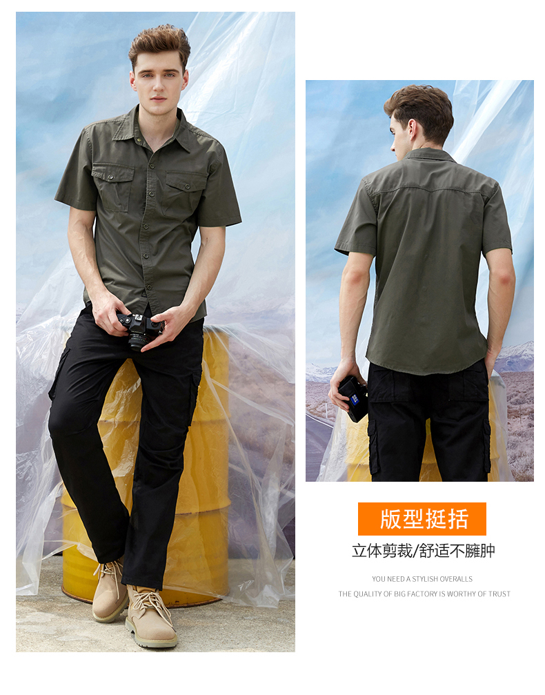 采购:重庆军绿色CVC细斜纹衬衫短袖工作服