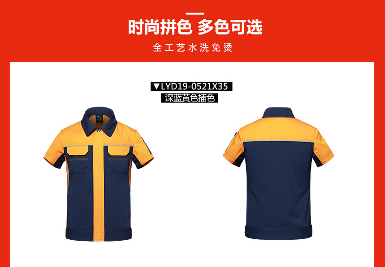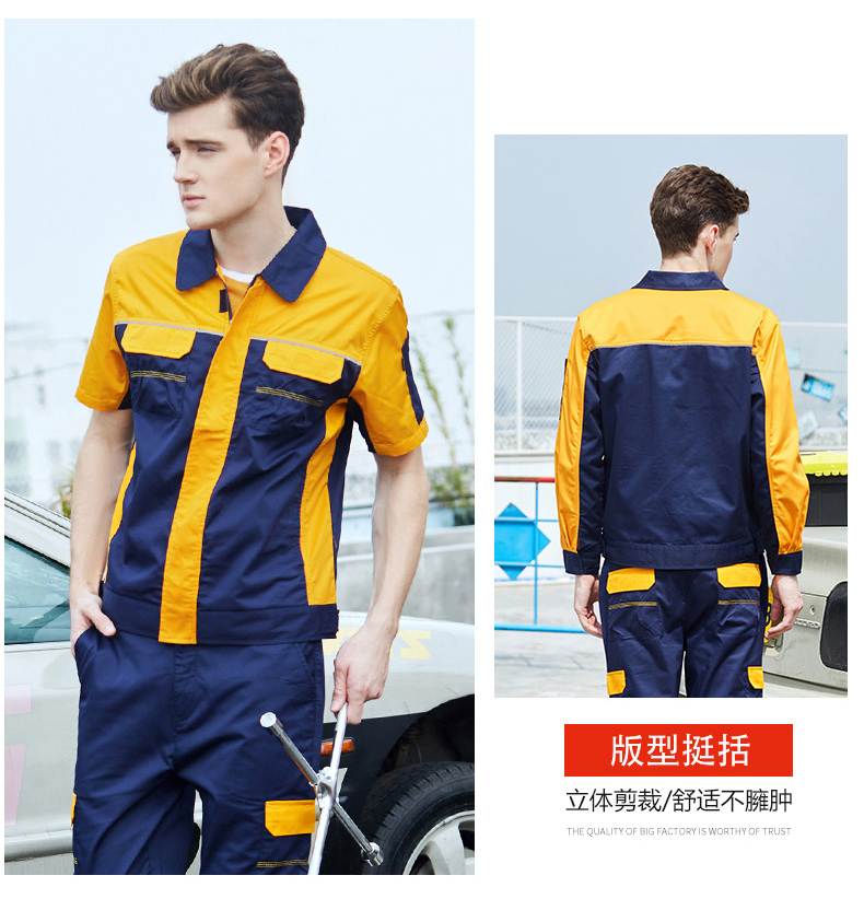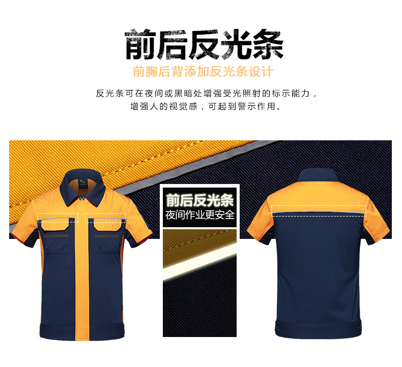 重庆涤棉细斜纹驼色黄色插色短袖反光条工作服