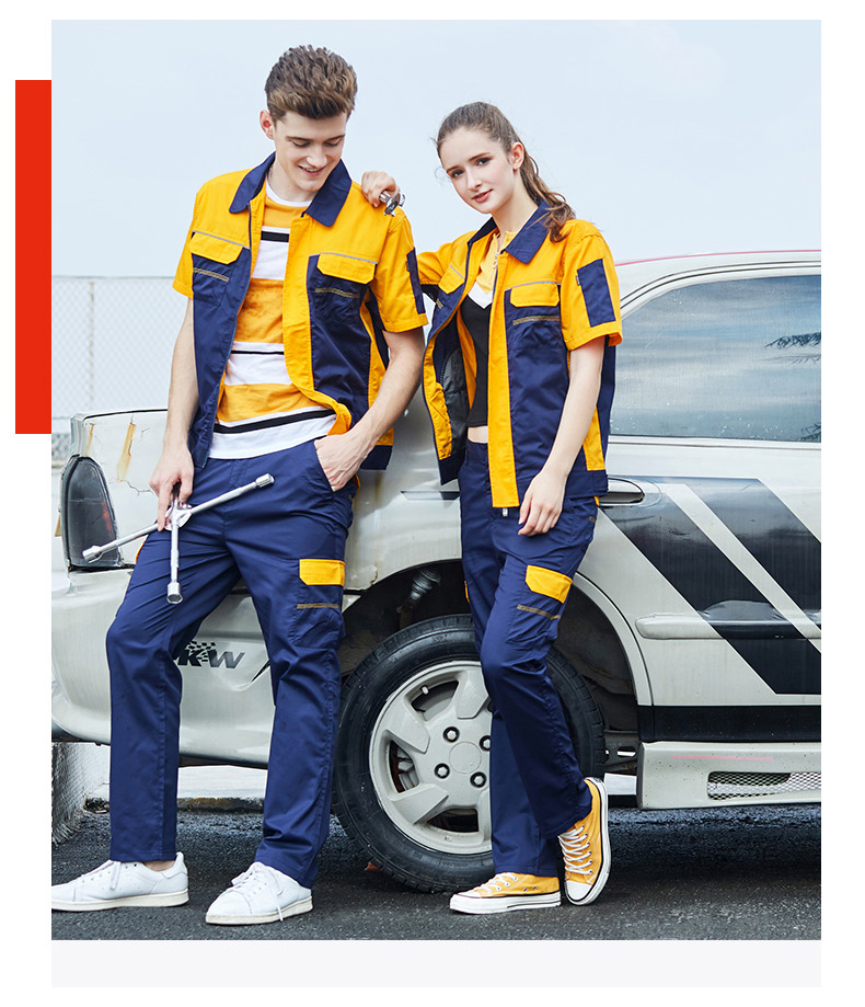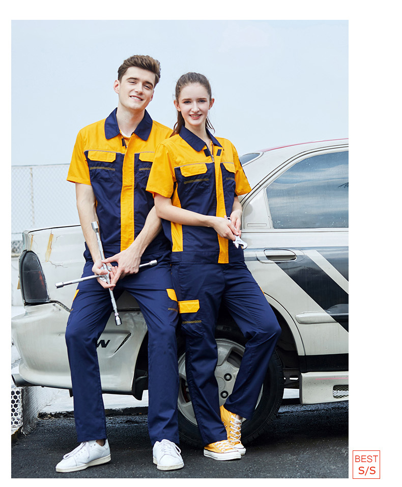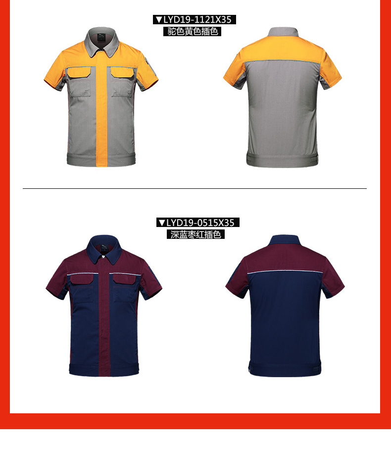 > 重庆涤棉细斜纹驼色黄色插色短袖反光条工作服
