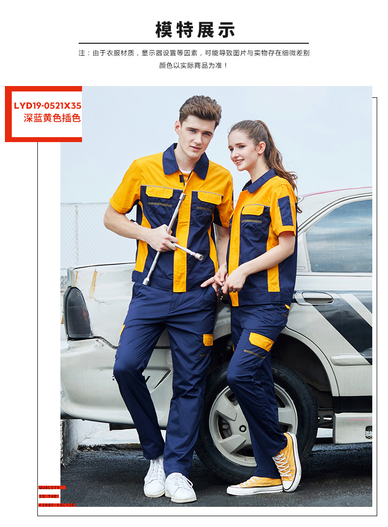 采购:重庆涤棉细斜纹驼色黄色插色短袖反光条工作服