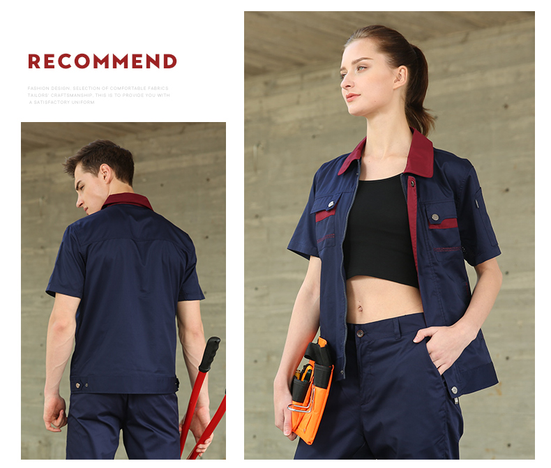 重庆涤棉细斜纹宝蓝深蓝插色短袖工作服