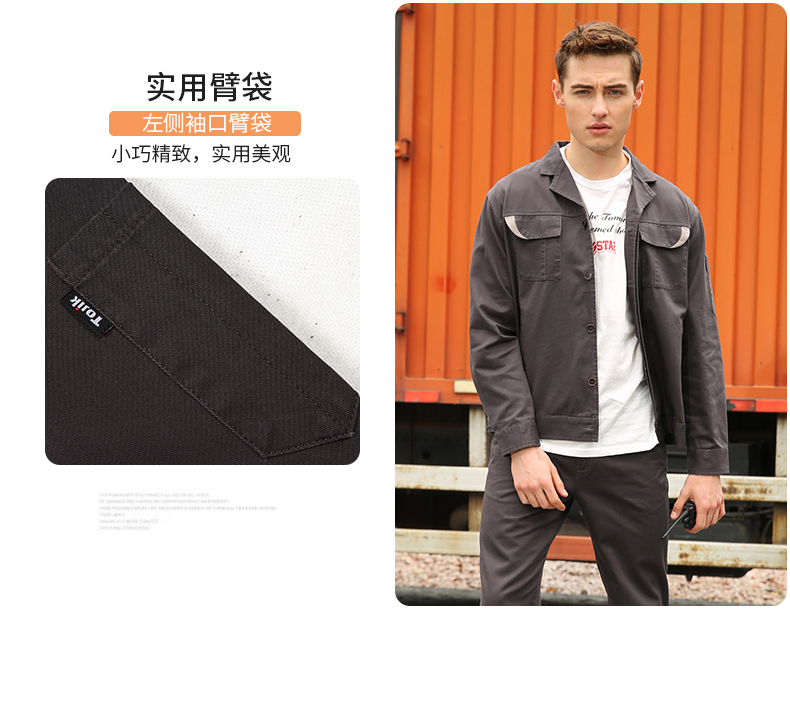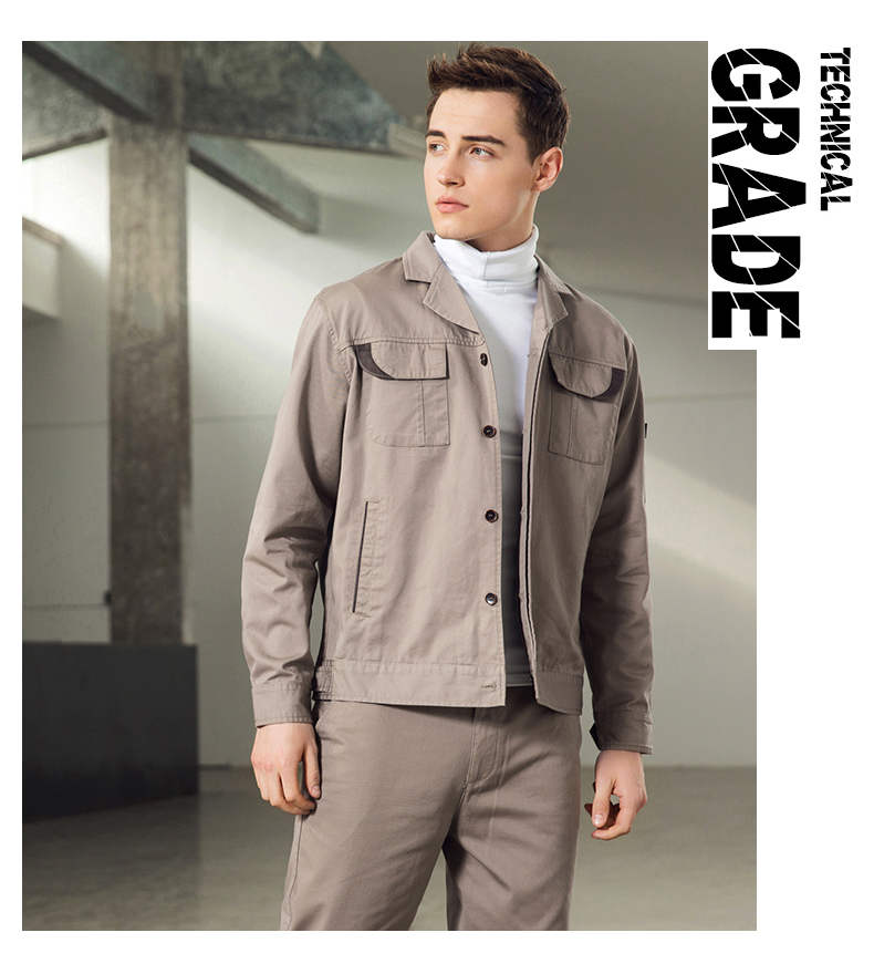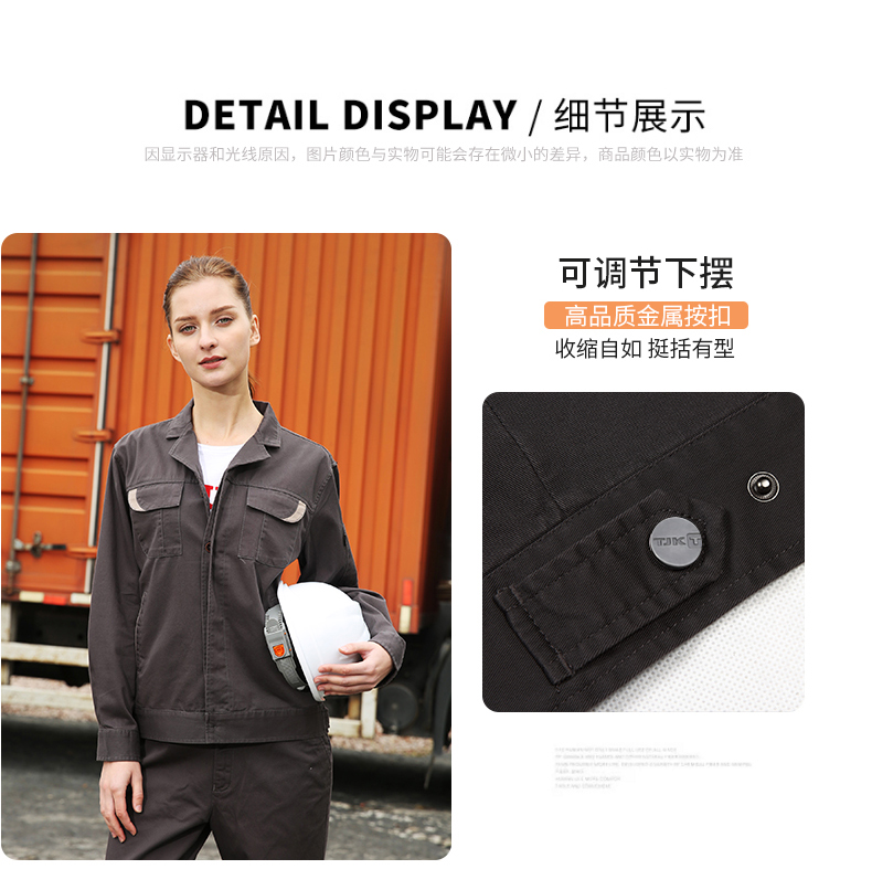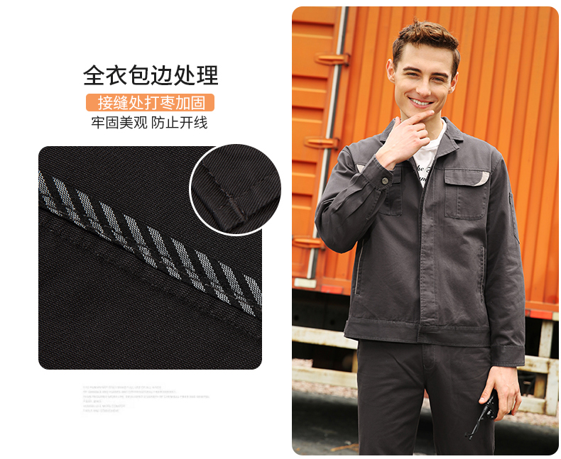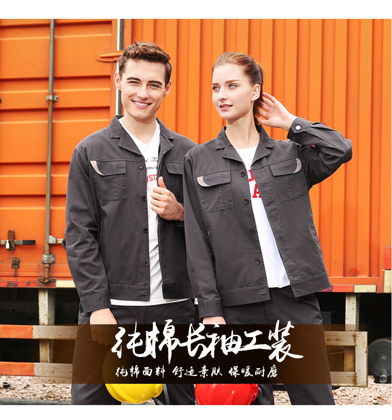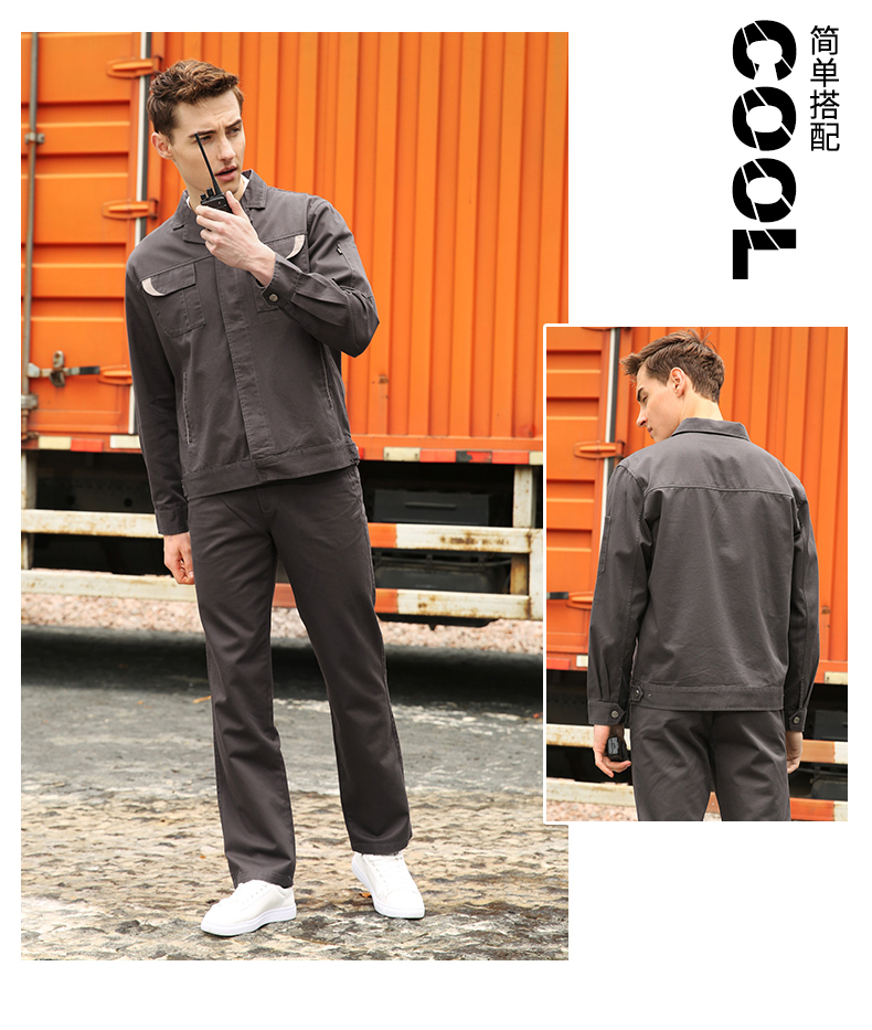 重庆涤棉厚纱卡铁灰色长袖工作服