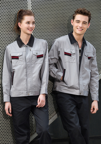 > 重庆浅灰色长袖涤棉纱卡工作服