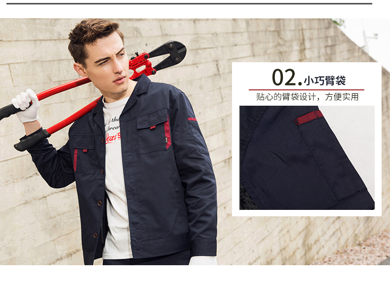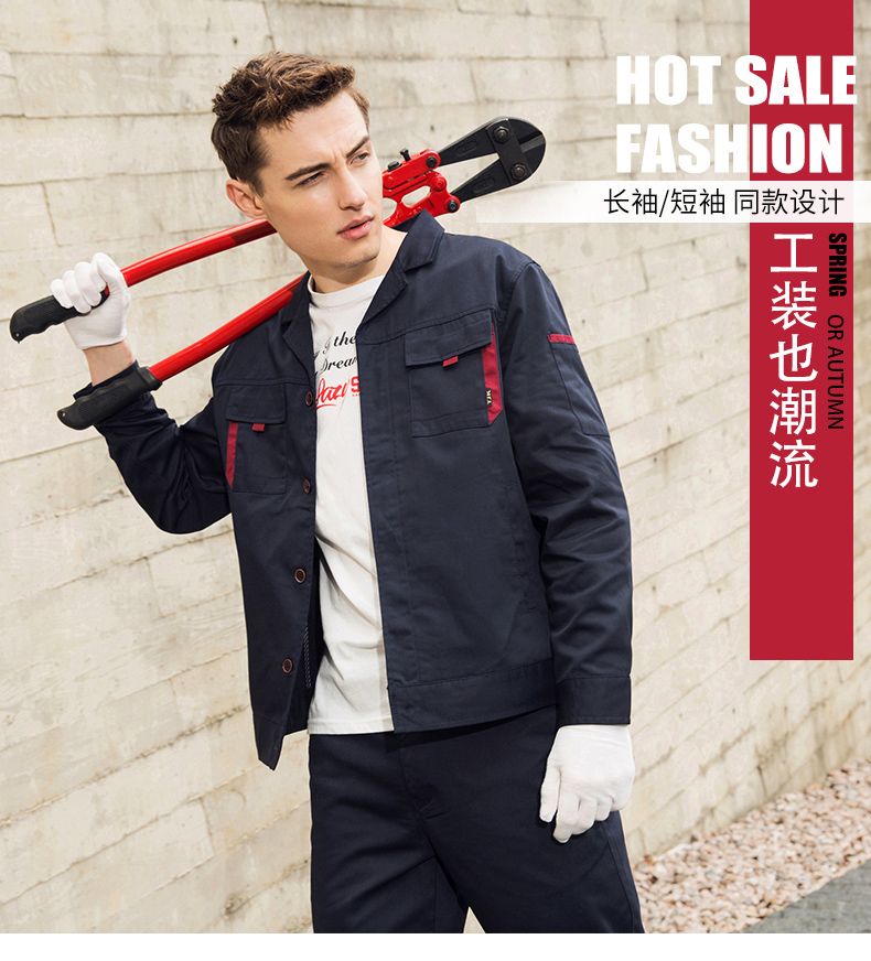 重庆涤棉细斜纹深蓝枣红插色短袖反光条工作服