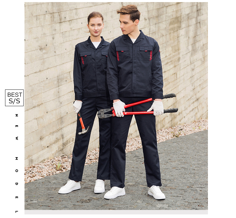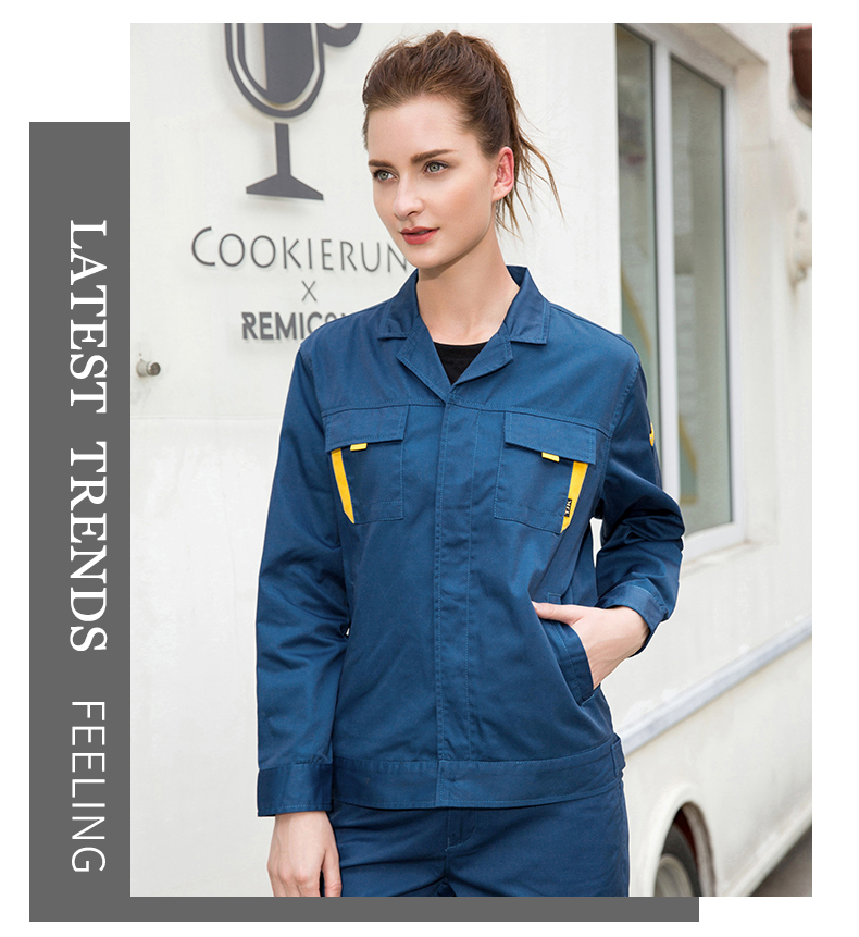 > 重庆深蓝色纱卡涤棉长袖工作服