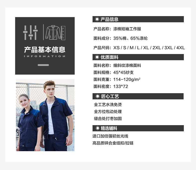 采购:重庆涤棉细斜纹宝蓝深蓝插色短袖工作服
