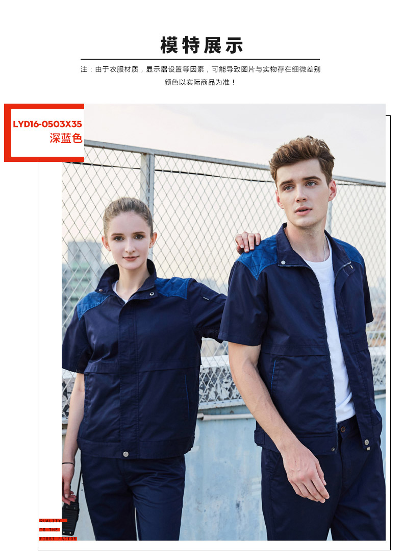 重庆涤棉细斜纹宝蓝深蓝插色短袖工作服