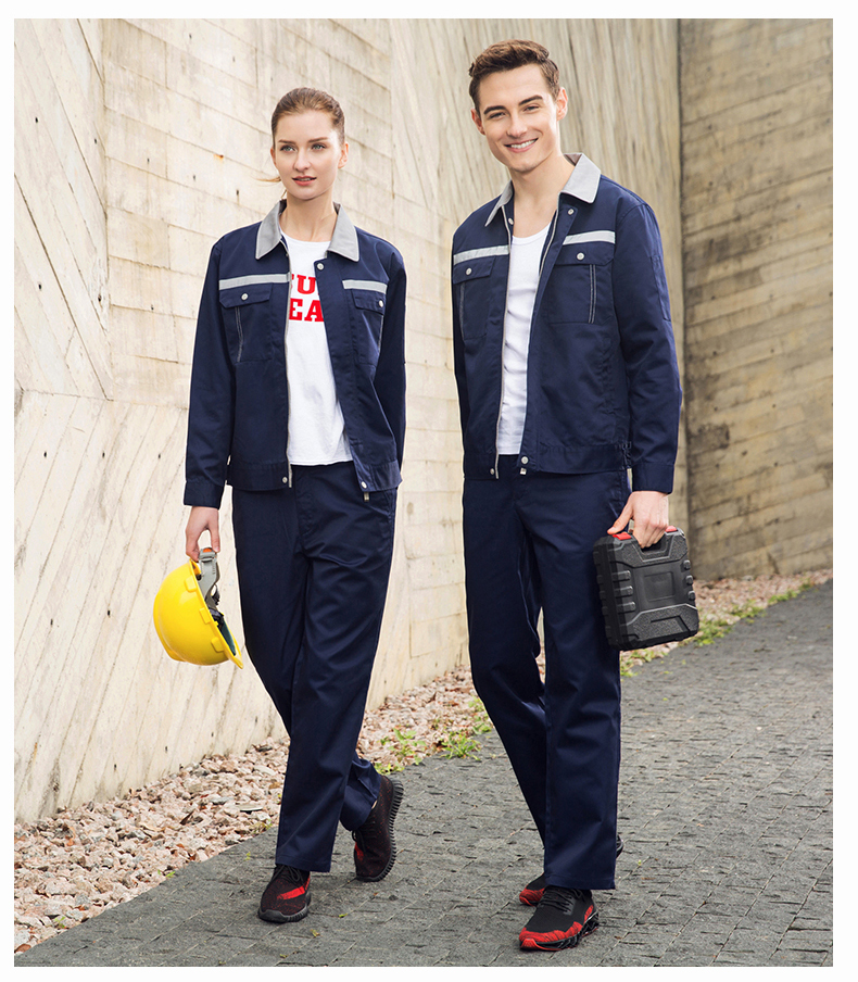 重庆涤棉厚纱卡深蓝色长袖工作服