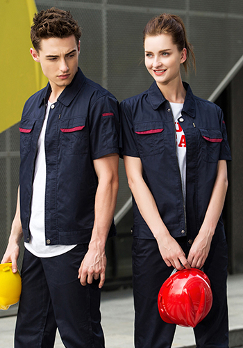 > 重庆深蓝色细斜纹涤棉短袖工作服