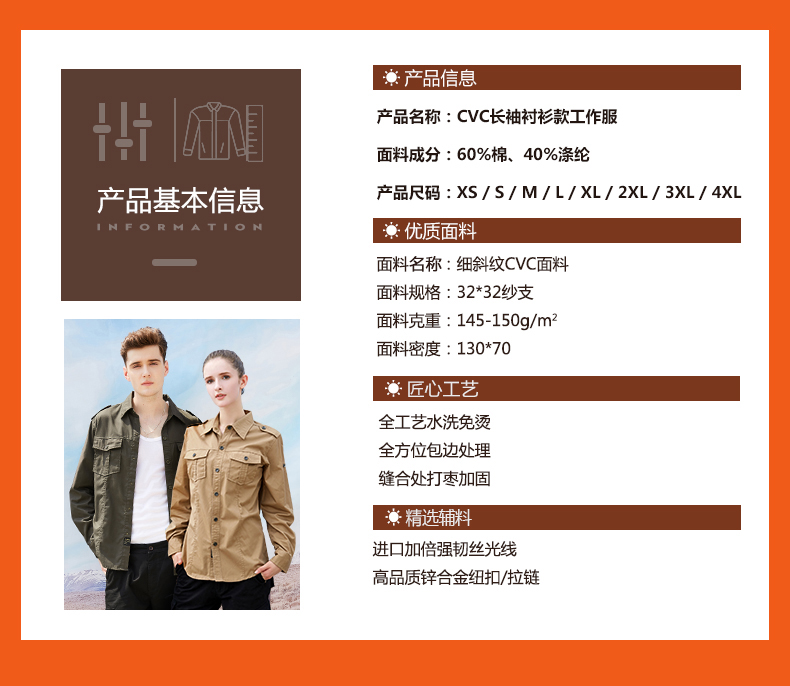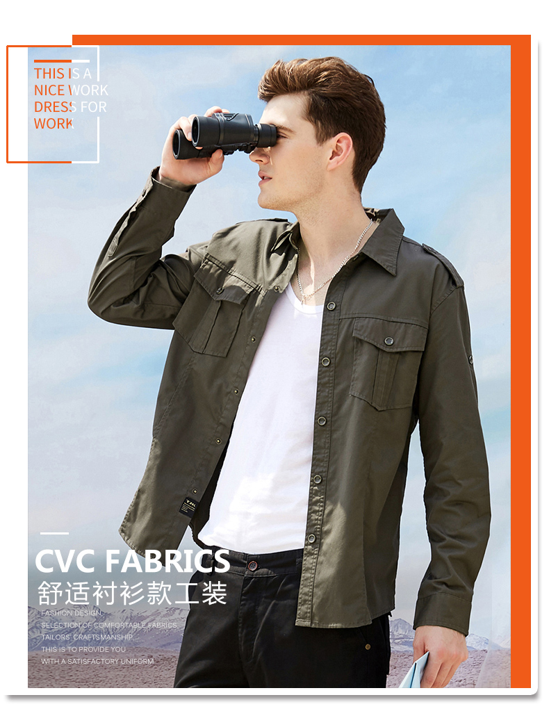 采购:重庆军绿色CVC细斜纹夏装衬衫长袖工作服